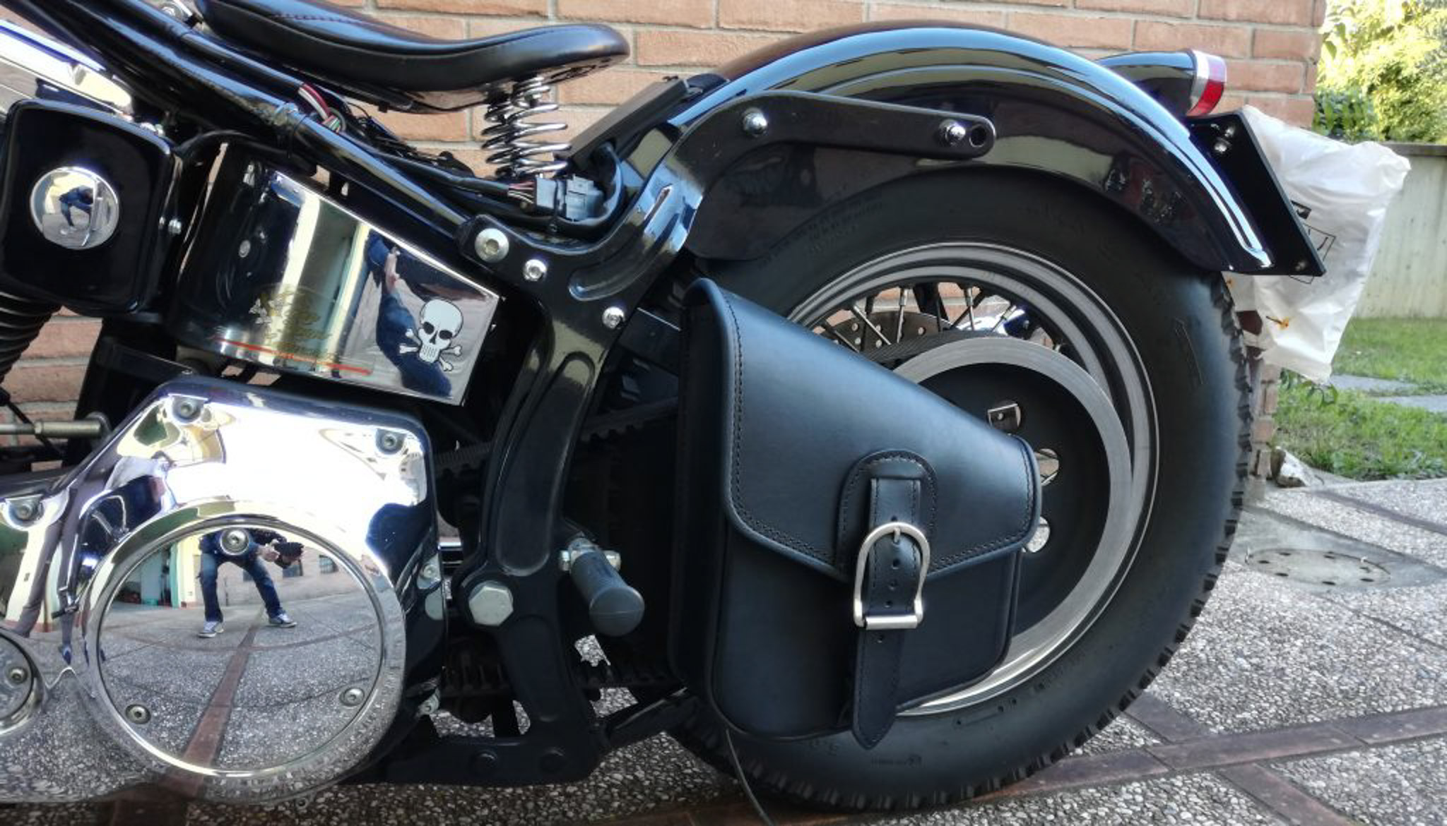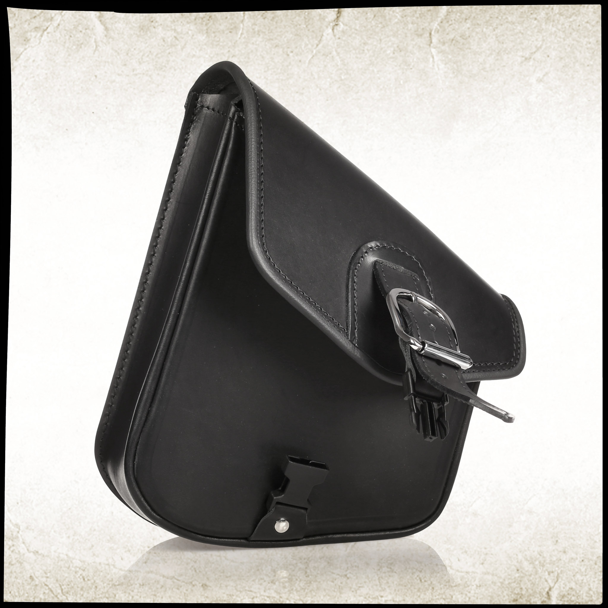 La sua linea essenziale è studiata appositamente per far risaltare il telaio Storico dei modelli “Softail”, ma anche di “Rigidi”, “Ribassati”…. La fibbia bella e importante, oltre a valorizzare la borsa, nasconde dietro un sistema di sgancio/aggancio rapido che permette di aprire e chiudere la borsa molto rapidamente.