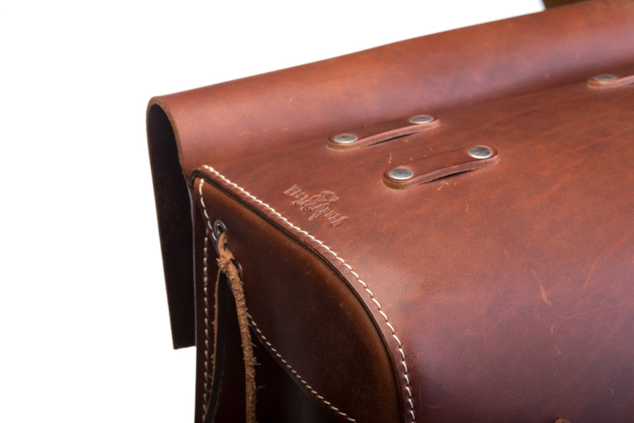 La chiusura con tappo “a scatola” rende la borsa ancora più ermetica. E’ arricchita da una tasca esterna portadocumenti. Su richiesta è possibile mettere un conchos.